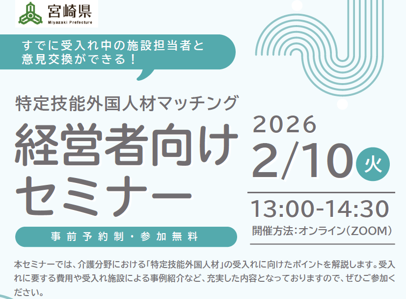 宮崎県:「令和7年度特定技能外国人材マッチング支援事業」事業者向け説明会(経営者向け)を開催します!